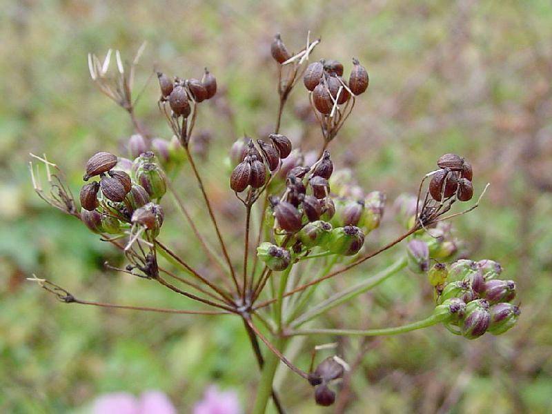 The fruits (seeds) contain essential and fatty oils, coumarins (have a beneficial effect on the blood composition), phenols and flavonoids (have a positive effect on the circulatory system).