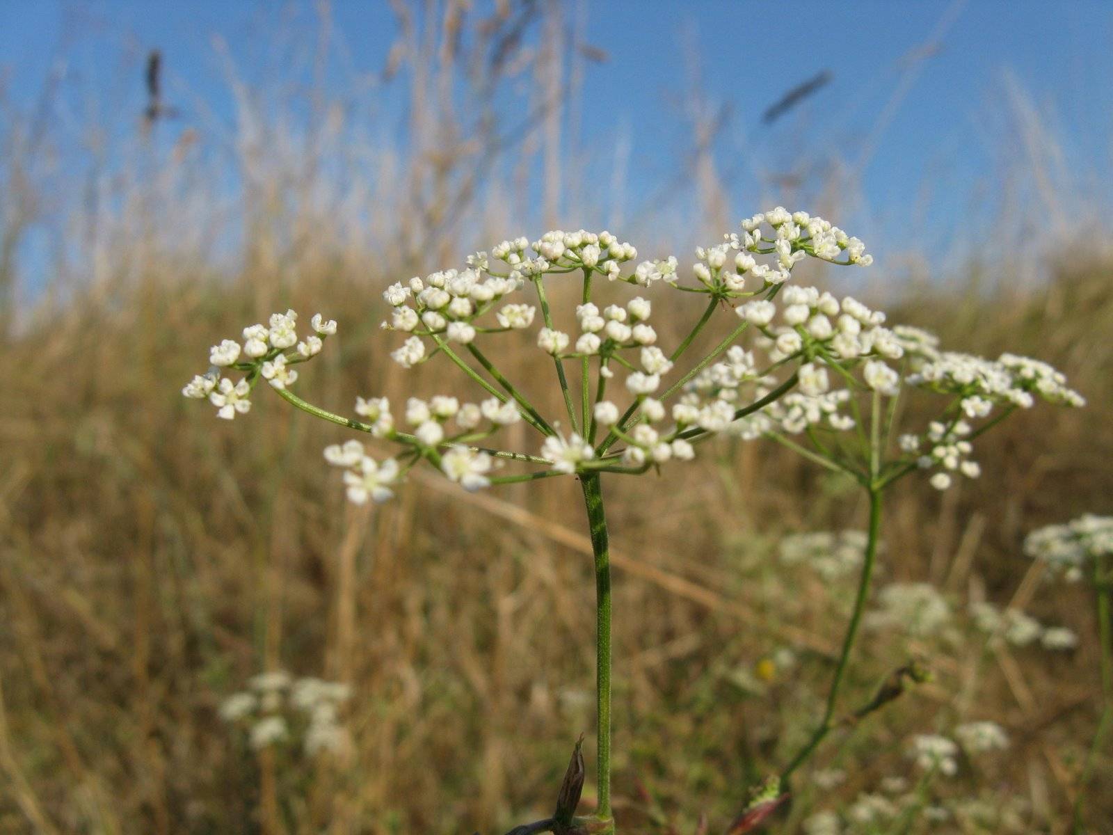 Saxifraga thighs (Pimpinella Saxifraga l, or saxifraga thighs) is a perennial fragrant herb of the Umbrella family with a fusiform root, a branched stem covered with remnants of dead leaves, with hollow stems 15-80 cm high, collected in a fibrous rosette at the base. The lower leaves are long, feathery, with large cuttings. Above, the stems are almost naked, covered with short leaves and umbrellas 5-8 cm each, on the rays of which there are small five-leafed flowers with white or pink petals.