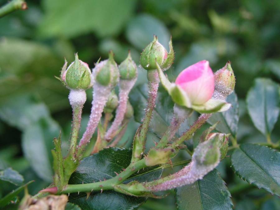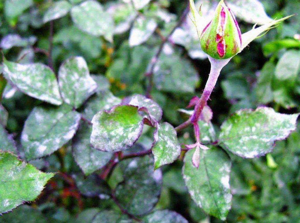 Prevention of white bloom on rose bushes
