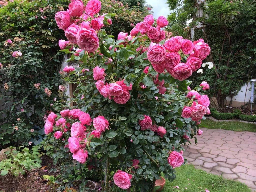 Rose from the Cordes group, bred in Germany in 1977. A climbing, highly developed bush with shoots up to 3.5 m long, blooms with densely doubled dark pink flowers. The variety is distinguished by its high disease resistance and winter hardiness.