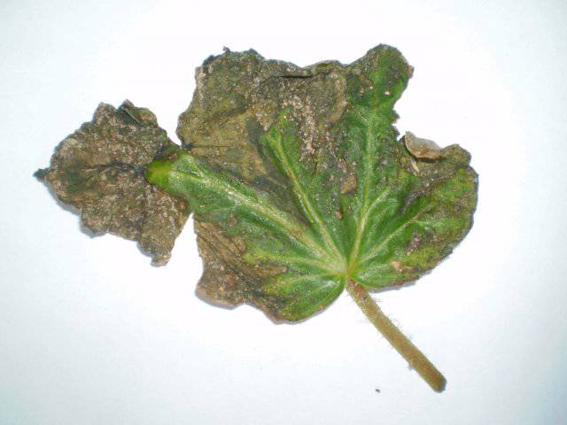 - fungal infection of the substrate. In this case, brown spots appear on the leaves of begonia, which eventually become covered with a gray bloom. The diseased plant should be isolated, the soil changed and the plant treated with a fungicide.