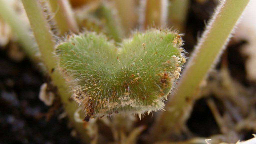 An infectious disease is caused by fungi. Infection can occur from diseased material, a new plant at home, or poor soil. It develops rapidly in high humidity on hot days.