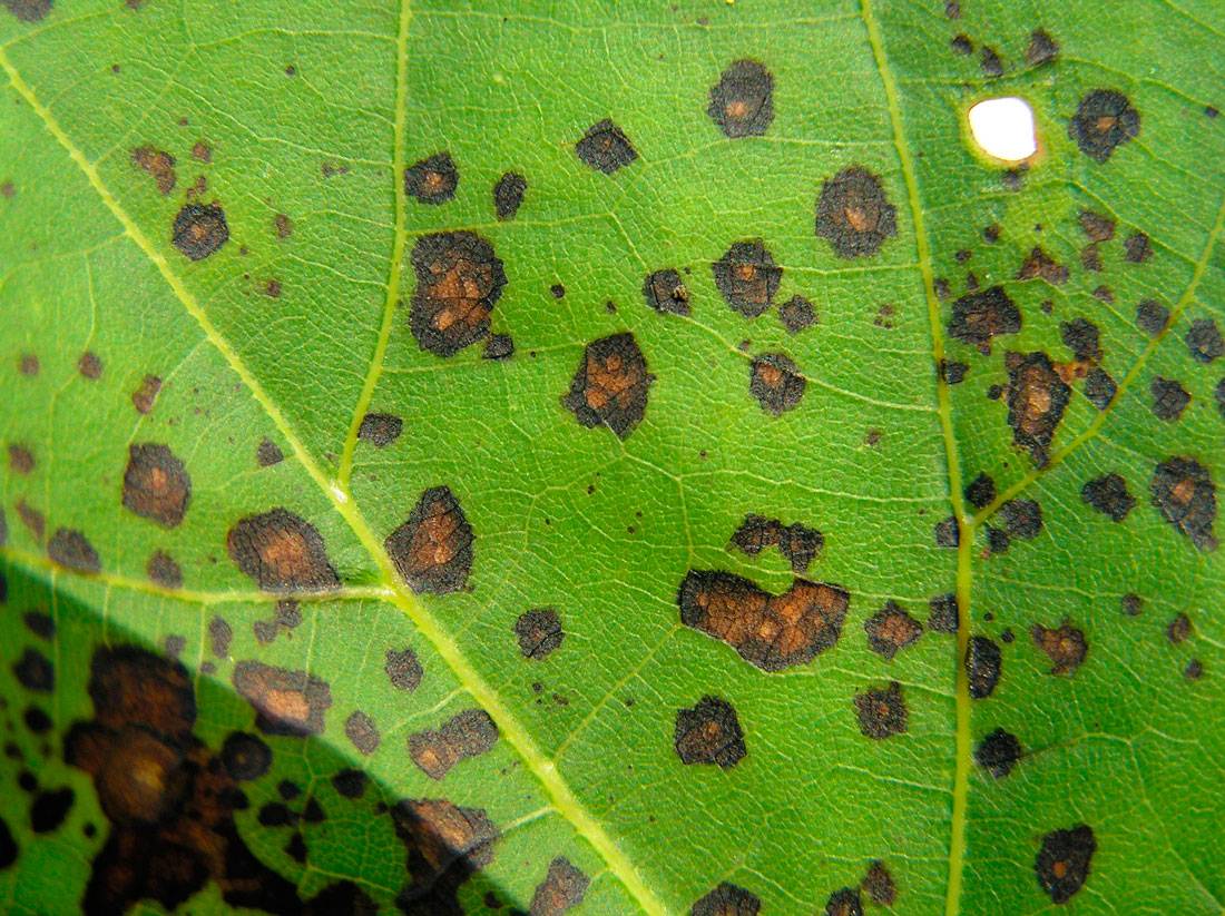 A characteristic sign of septoria is the appearance of dark spots on young and old leaves, up to 6 mm in diameter. Gradually, the leaves turn yellow and fall off. If you do not start to fight the cause of white spot, all the foliage will gradually fall off and the bush will die.