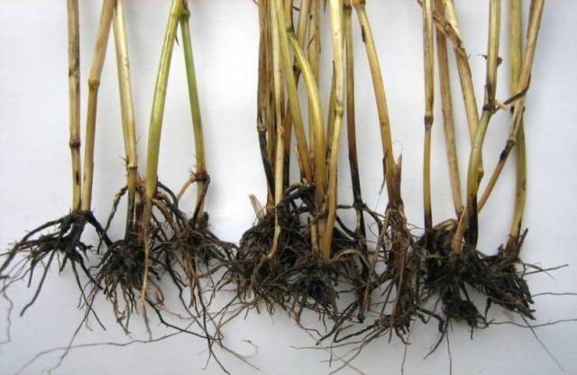 To cope with root rot, it is necessary to correct the condition of the soil by adjusting its acidity and reducing watering. Plants that are already infected must be burned to prevent the spread of the infection. If the plant is not completely damaged, but only individual shoots, it is enough to get rid of them.