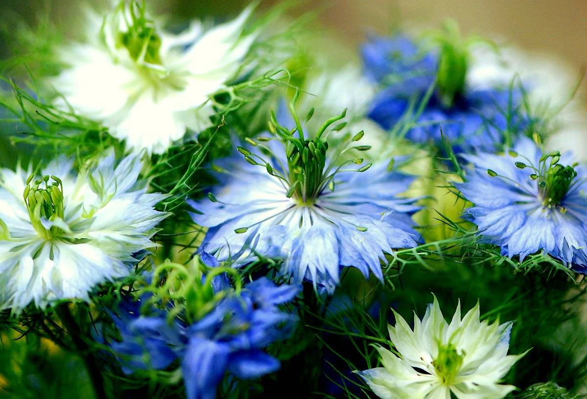 Damascus nigella (Albina) - a flower of white, blue and blue