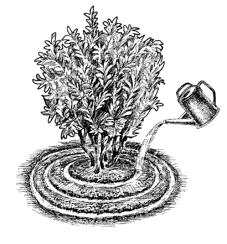 15-20 liters of water is enough for a bush, which is poured out at the root. Shallow loosening of the soil (about 15 cm deep) is recommended after abundant watering or precipitation, so that an earthen crust does not form on the surface.