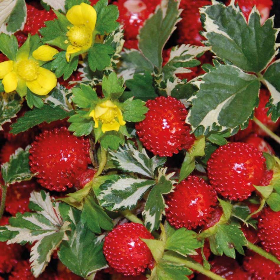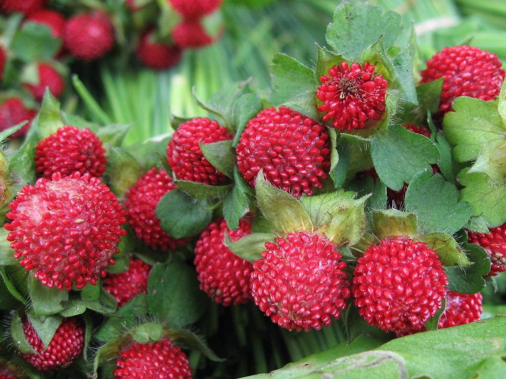 - The Indian duchenea Rosita is an excellent ground cover variety. Bright red berries and yellow flowers look spectacular throughout the summer season. Flowering and fruiting do not stop for a long time. You can grow Indian strawberries both outdoors and in hanging pots. However, when grown at home, it will have to be constantly replanted due to its ultra-high growth rate.