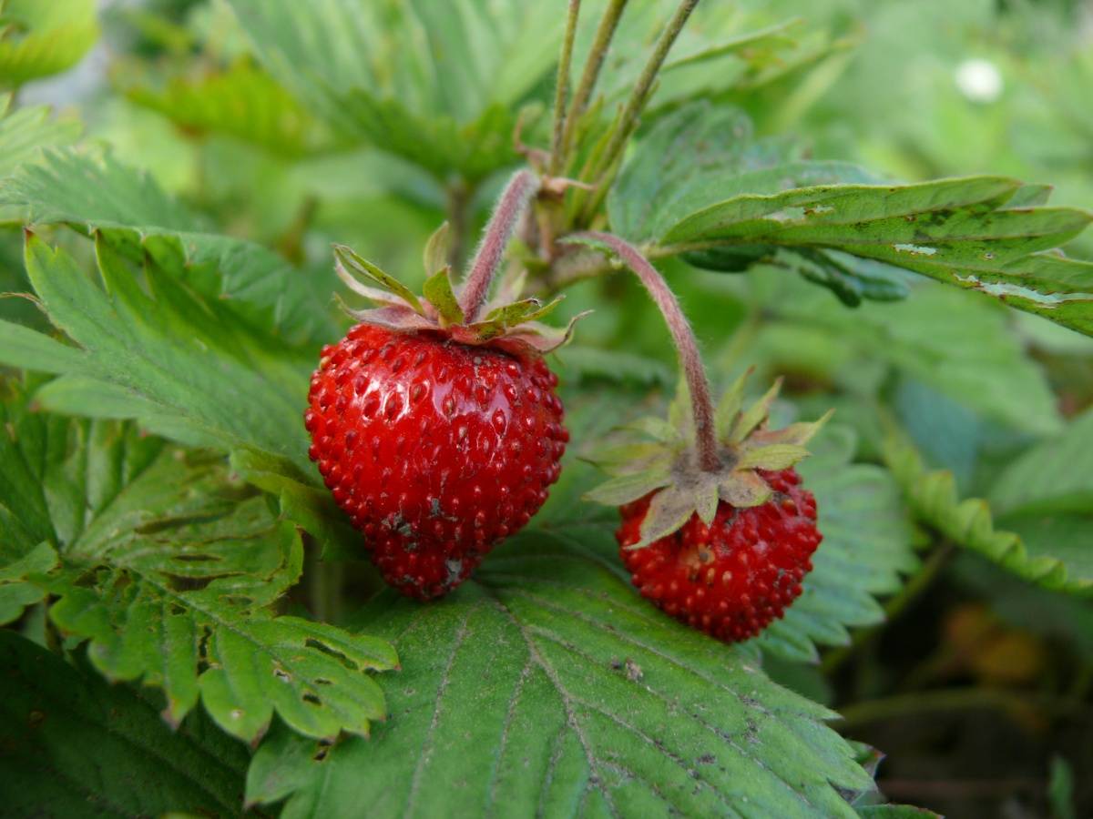 The main difference between the fruits is that the strawberry berries are tilted downward, while the duchenea lifts its fruits upward.