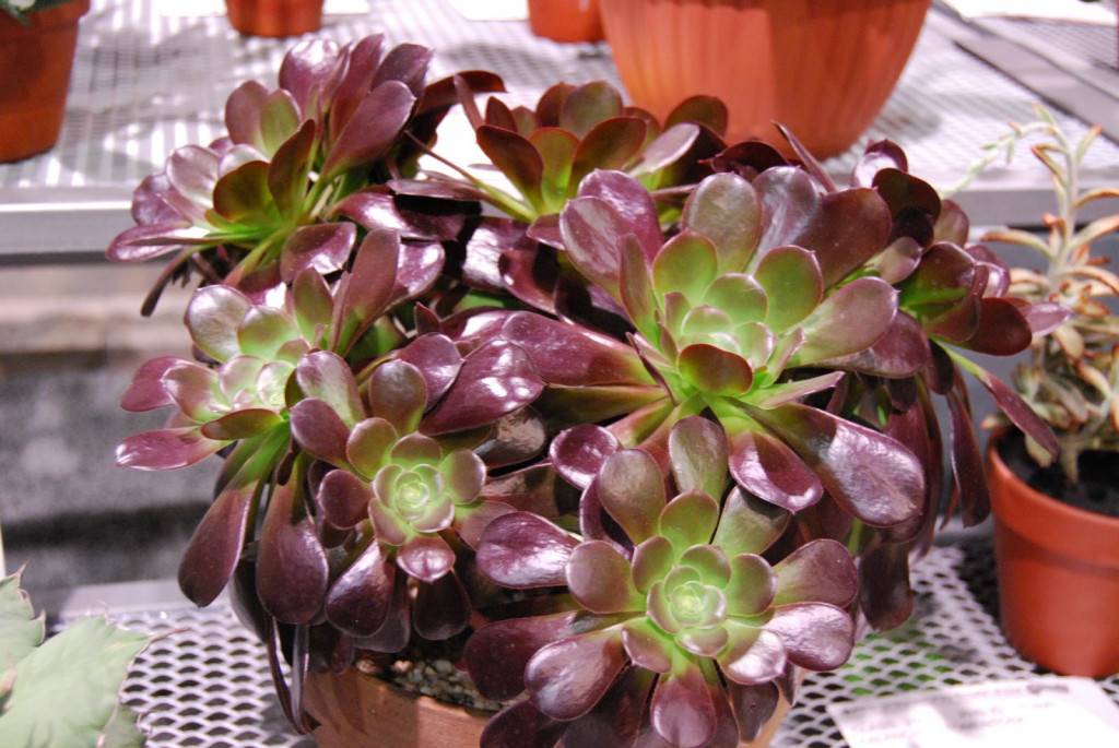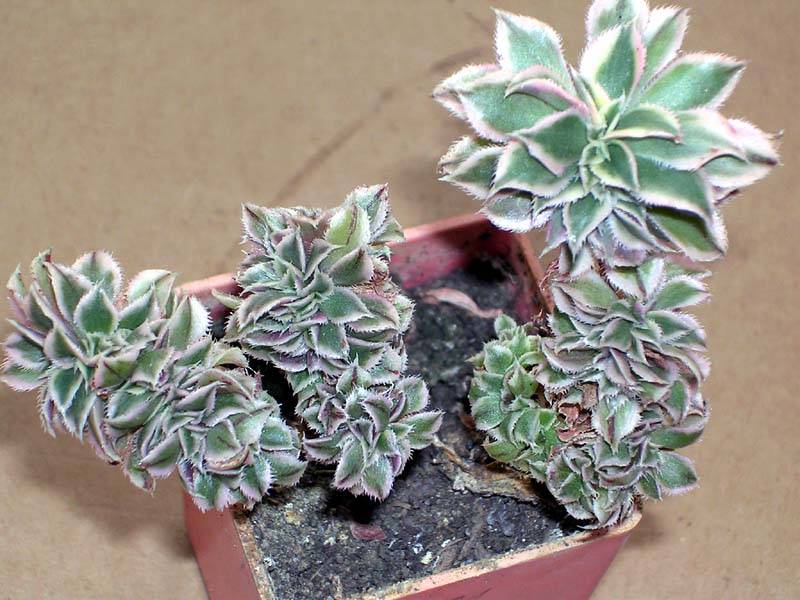 - Aeonium Haworth is a succulent branched variety, it can reach a height of 30 cm. The leaves are dense, fleshy, have a gray-green color.