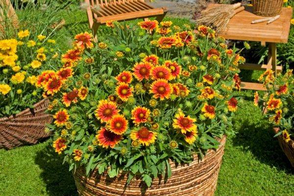 Gaillardia is used in landscape design in flower beds quite often due to the long flowering and appearance of the flowers. The bushes are compact, do not interfere with other plants nearby. Suitable for alpine slides.