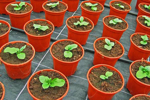 - When 2-3 true leaves appear, the seedlings are transplanted into separate pots.