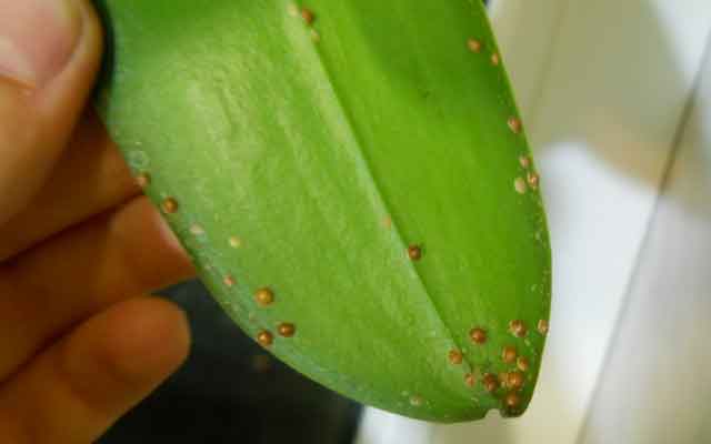 If a scale insect is found on a flower, then the plant must be immediately isolated from other indoor inhabitants. These insects affect the entire ground part of the plant, first damaging the edges of the leaves, then spreading over their entire surface.
