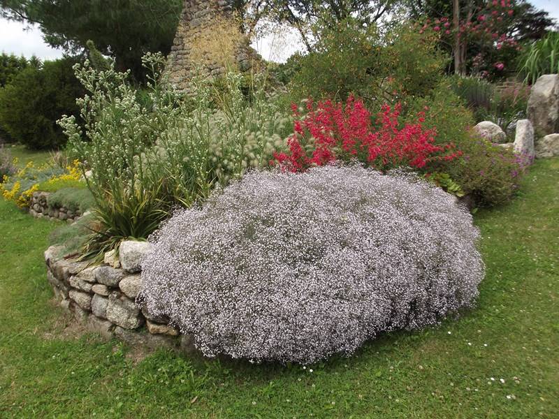 Gypsophila, which practically does not need watering, looks wonderful in rockeries and alpine slides. Good neighbors for her are verbena, phlox, roses, marigolds, yarrow, escholzia.