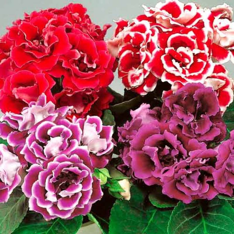 Gloxinia Brocada belongs to terry varieties. They are divided into several groups, their differences lie in the color of the petals:
