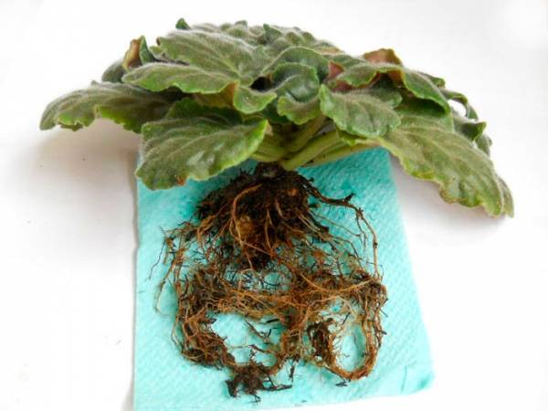 The root system of violets is quite thin and delicate. Its peculiarity lies in the fact that the direction of development does not go down, but in the overwhelming majority of cases spreads in the upper layer of the soil. It is for this reason that it is necessary to create specific conditions for the plant, choosing pots that correspond to the shape of the saucer-like arrangement of the roots.