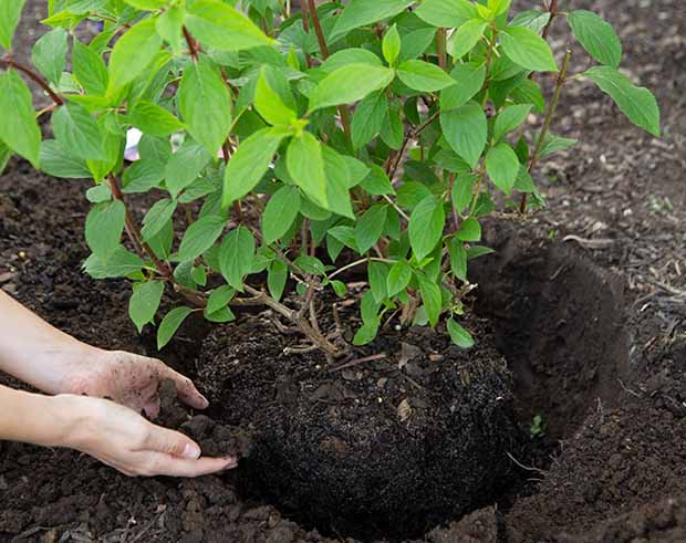 - In the center, place the Candlelight panicle hydrangea, straighten the main and adventitious roots.