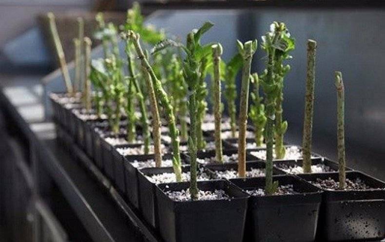 A cut is a segment of a plant shoot with a length of about 20 cm, which has two or three pairs of buds. They cut it off (at an acute angle) in early spring, until the buds have blossomed, and then put it in water until the roots appear or immediately plant it in a container with special soil for flowering plants. Annabelle pink hydrangea is transplanted to a permanent place in a year.