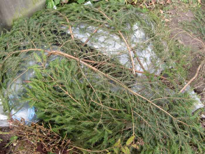 Before covering the bush, you should clean it of dry leaves and damaged branches. After that, in the root zone, the plants mulch the soil with sawdust, and the bush itself is covered with spruce branches.