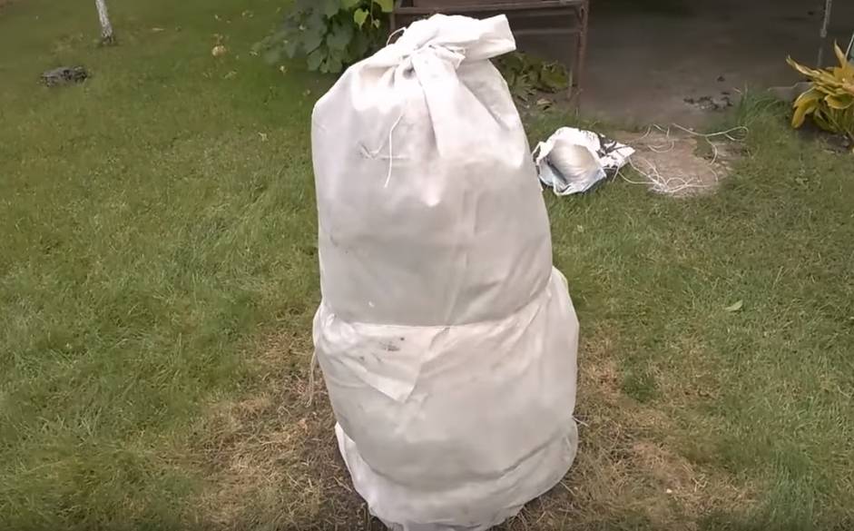 If you do not want to bend the bush or there is no place for this next to it, you should build a frame made of metal, fill it with dry leaves, sawdust, and cover it with a film on top.