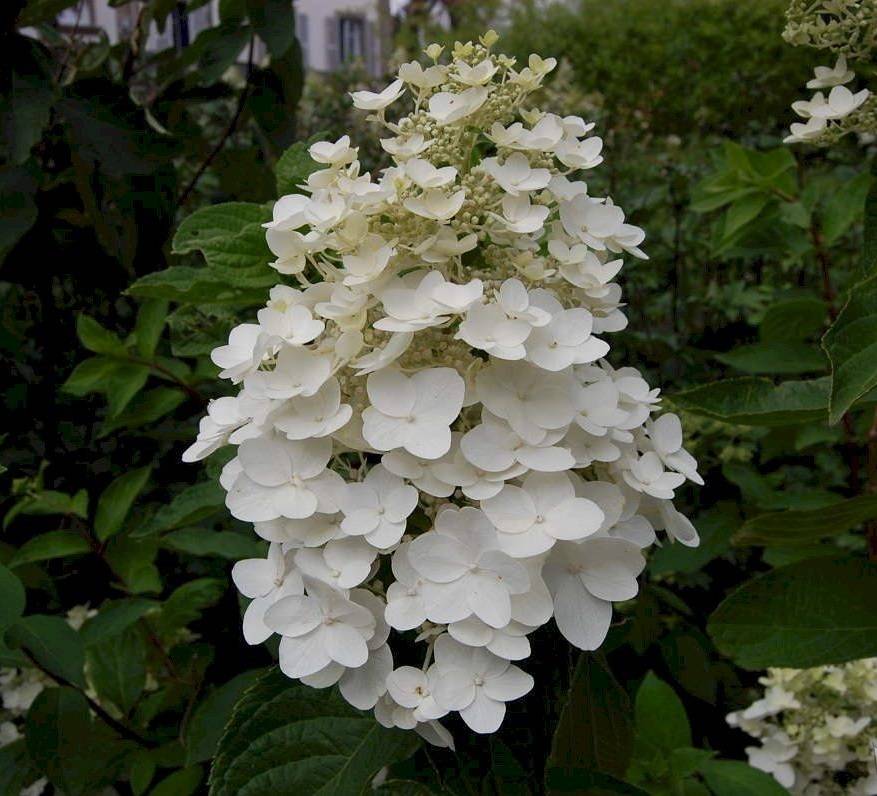A shrub with a rounded crown, the diameter of which can reach from 2 to 3 m. Differs in long flowering from mid-summer to late autumn. Ovate leaves can be up to 12 cm long, slightly pubescent. Flowers are collected in pyramidal inflorescences that can reach 25 cm in length. Four-petal flowers tend to fall early.