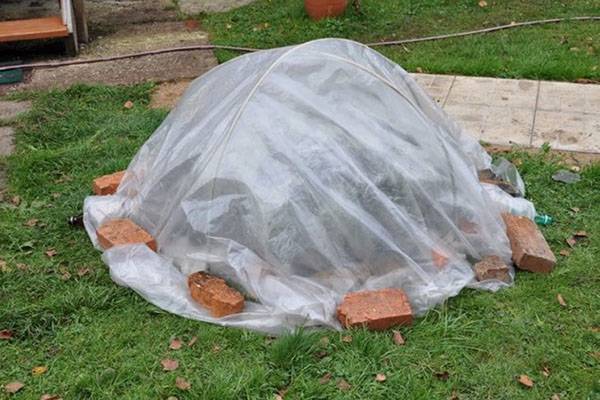 - when laying shoots on the ground, boards, cardboard or spruce branches are placed under them, carefully fixed;