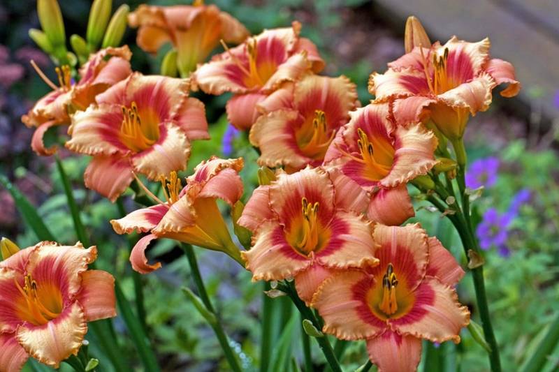 The flowering period of daylilies can be different, depending on the variety. When purchasing a plant, these terms can be viewed on the package. The earliest species begin to bloom in May, but there are quite a few of these, and outwardly they resemble wild flowers. In the early ones, the buds begin to bloom in late June and early July. At the end of the 7th month, you can wait for blossoming flowers from medium-sized daylilies, and in August, late ones will also ripen.
