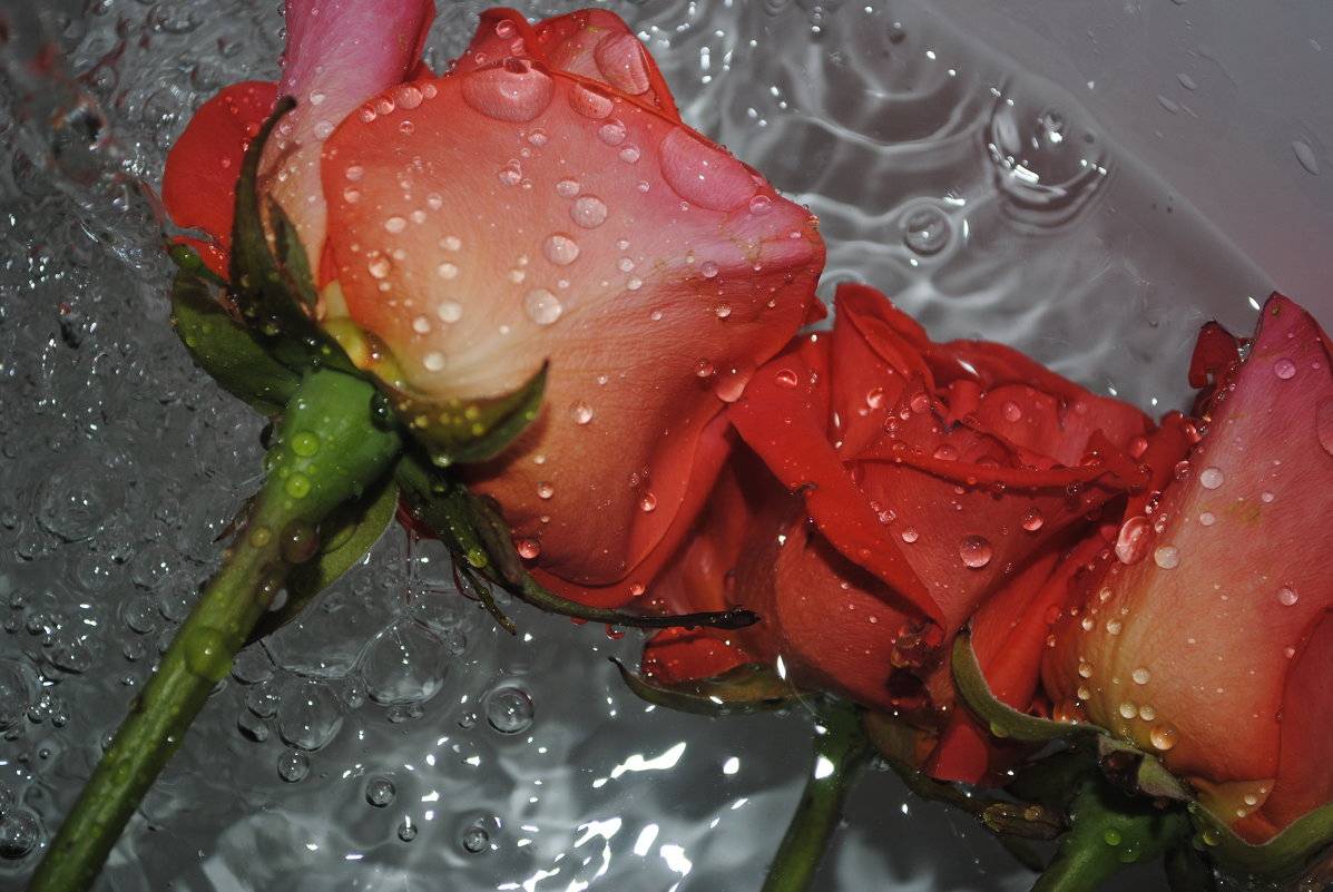 It is required to pour water into the container to the height of the cut on the stem, and then lower the roses into it. After a couple of minutes, they should be taken out and cut off the blackened part of the plant. Then you need to place the flowers in ice for a few minutes, and then return to the vase.