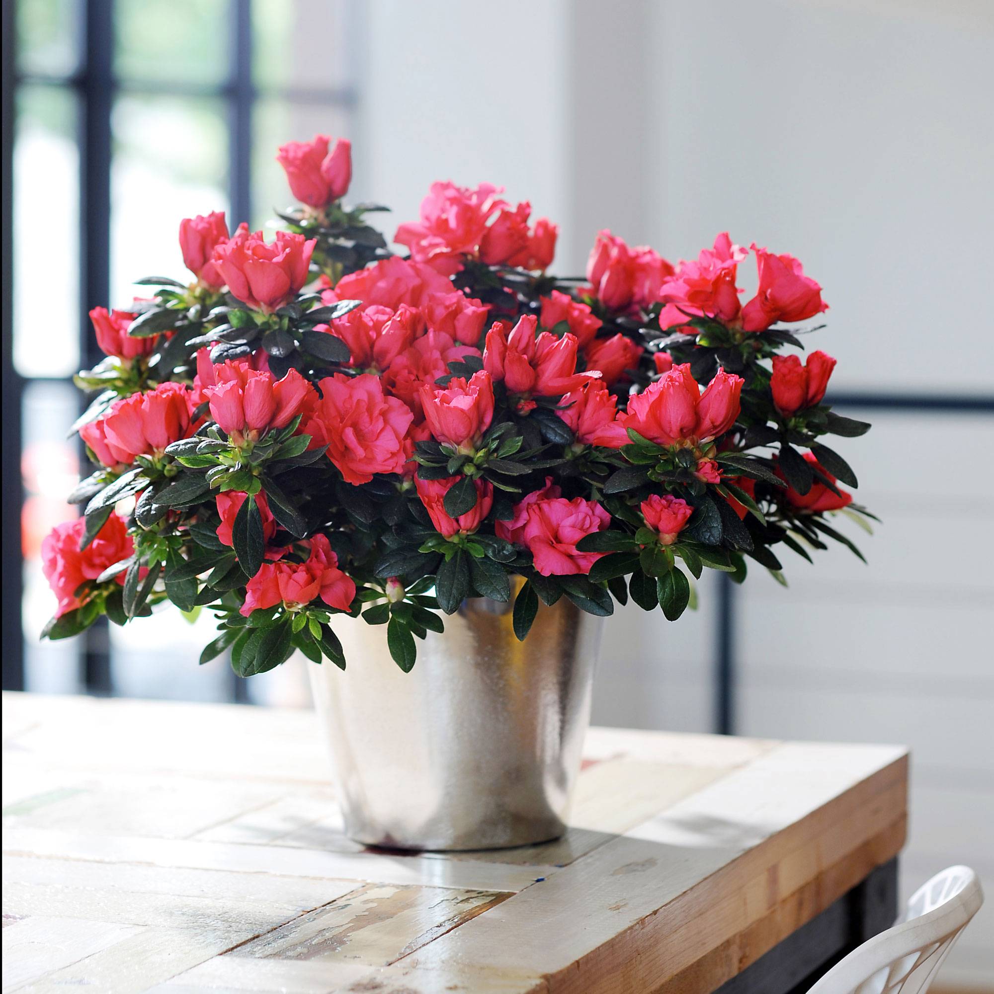 - azalea. The amazingly beautiful azalea native to the Middle Kingdom is characterized by the presence of delicate flowers of very different colors. Their petals can be white, pink, but the most popular are red. The buds begin to open in December and continue until April. Azalea is completely undemanding to care and living conditions. She will need watering, as well as a large amount of diffused daylight;