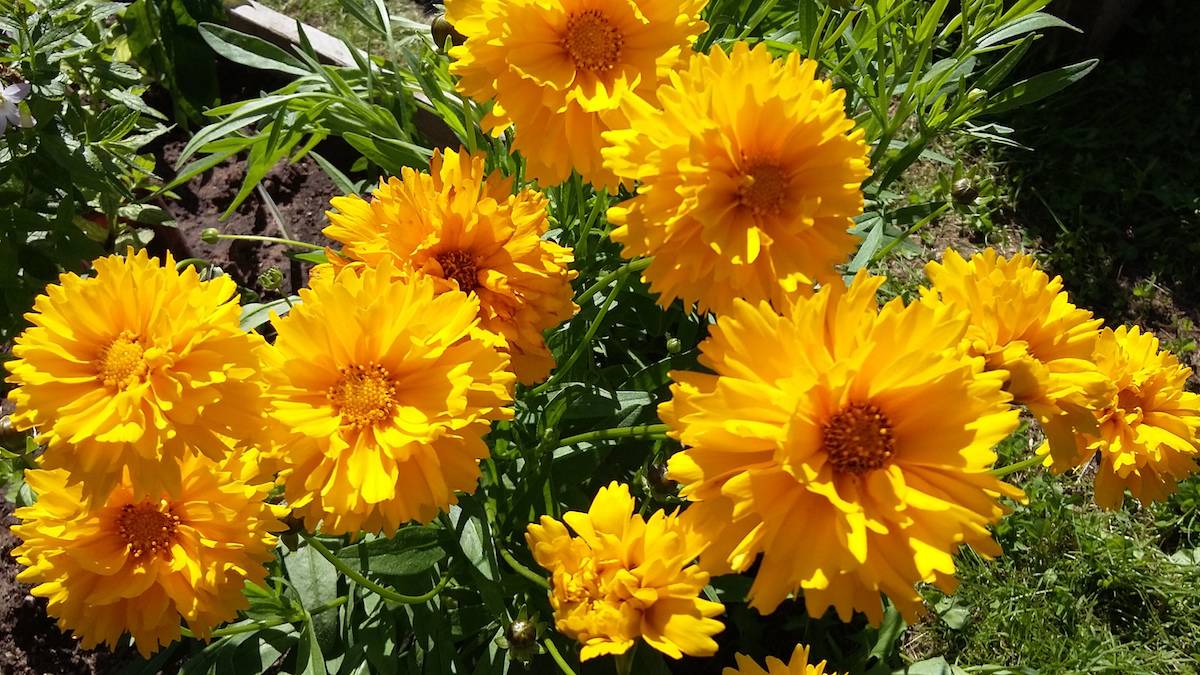 - Grandiflora (coreopsis grandiflora) is a neat small bush covered with yellow flowers.