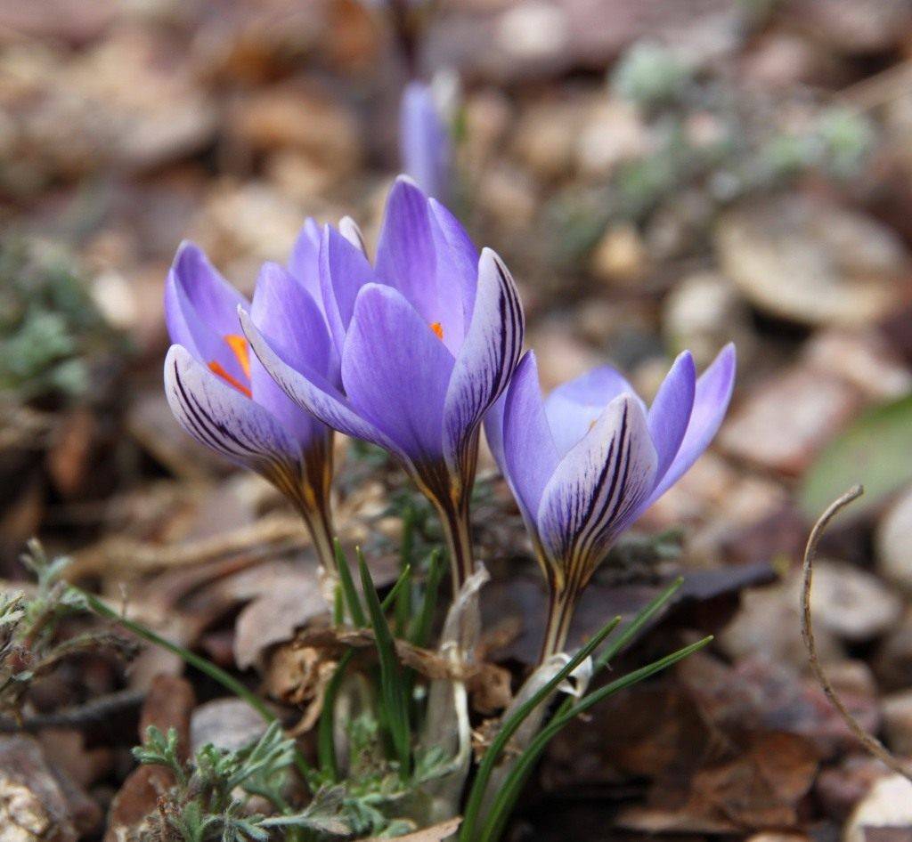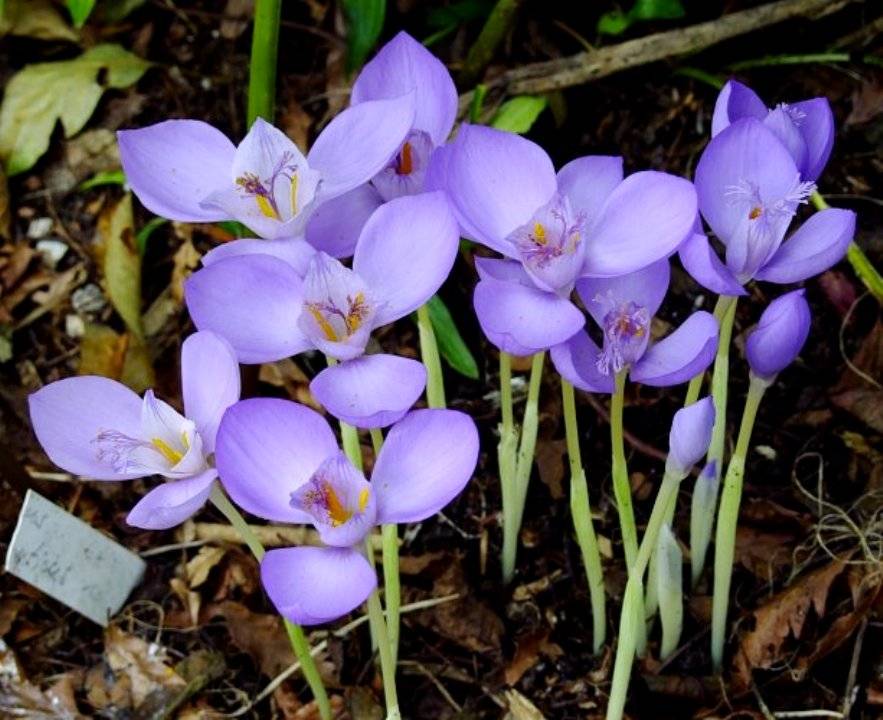 People usually grow this species indoors.The bulbous system has scales, the leaves are colored green, and the flowers are bell-shaped, the shades of which can be either white or purple. The saffron is no more than 17 cm high and blooms for about 21 days.