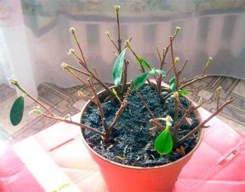 The next pruning occurs when the plant is transferred to the wintering site. At this point, old, damaged shoots are removed, as well as fresh ones that are not included in the overall composition.