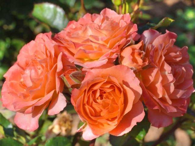 The height of the bush rarely exceeds 35-40 cm. The bush is sprawling, abundantly planted with dense, leathery leaves. The stems are strong, red-brown in color. The popularity of the Hummingbird hybrid is explained by the amazing color of the densely double buds - they are delicately peach in color. In addition, the flowers exude a pronounced tea aroma. Usually flowers are collected in clusters of 3-5 buds.