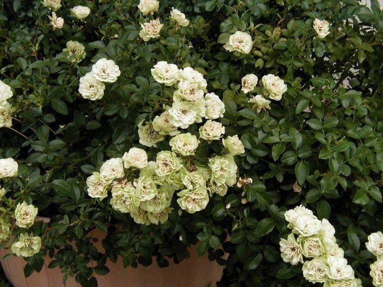 Among gardeners who love miniature roses, the Green Ice variety is very popular. This hybrid was created by American specialists in 1971. The height of the bush when grown in a pot under indoor conditions does not exceed 45 cm. The stems are flexible, they do not change color when lignified. The foliage is dense, the leaves are small, dark green. Flowering is usually abundant, wavy. The buds are collected in clusters of 3-5 pieces.