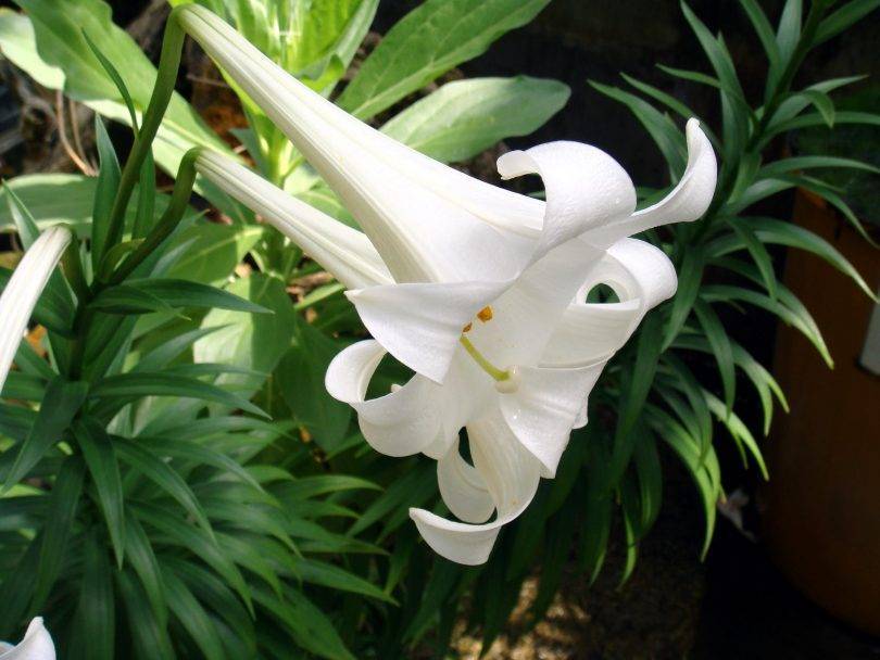 Hybrids come from Longiflorum, Formosa and Filipino lilies. These varieties are predominantly colored in white. The height of the stem reaches about 130 cm. The cultivars often suffer from diseases and viruses, therefore they must be regularly treated with various preparations that are available in flower shops.