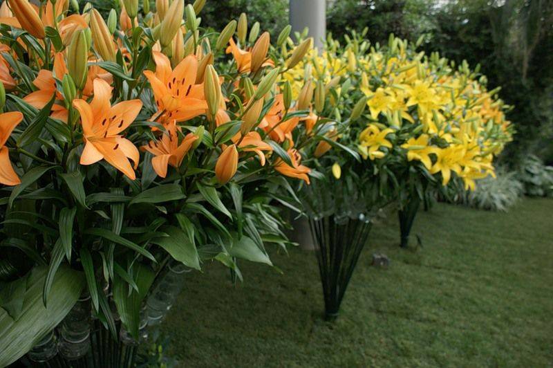 Caring for pyramid lilies is easy. Water the plants in moderation 3-4 times a week. For this it is worth using settled water. Do not spray lily leaves, otherwise there will be a chance that the plant will get burned.