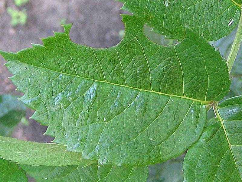 Finding the rose leafhopper on the leaves is simple. They become covered with yellowish-white spots and holes. There is no effective method of pest control. The infected parts of the plant are destroyed, the rest are treated with various preparations poisoning the leafhopper and its larvae.
