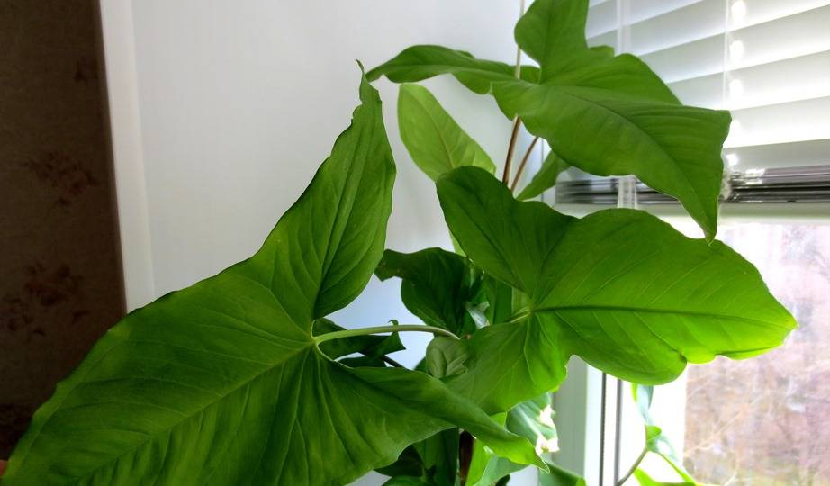 The foliage is heart-shaped or arrow-shaped. Flowers in appearance resemble cobs, painted in white, yellow and pink shades. They are surrounded by luxurious, shiny “bedspreads”, the shade of which can be either white or dark red. The veil is heart-shaped.