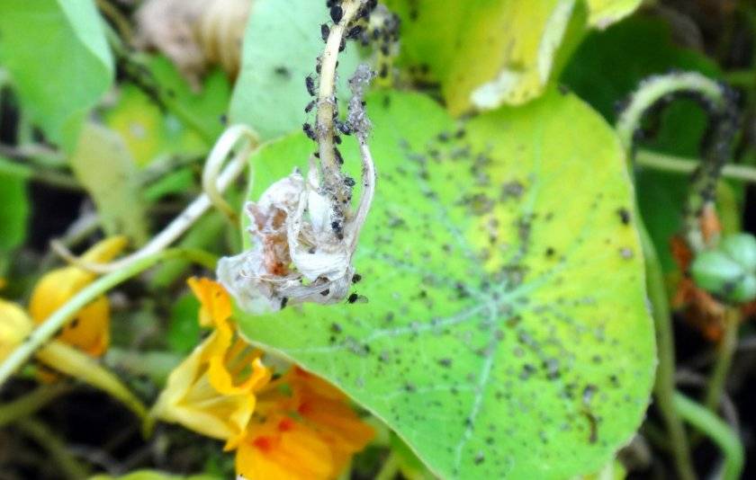 Caterpillars, bugs and midges can overcome nasturtium. It is necessary to fight with them, otherwise they will suck out all the juices from the plant, and it will die.