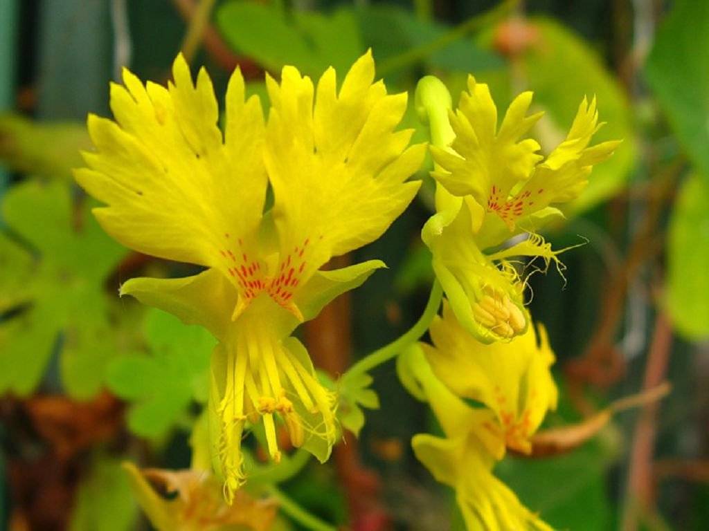 The Canary Creeper variety differs in the shape of the buds. The two upper petals are larger and directed upward, and the three lower ones are knitted together. Therefore, the yellow petals of the flower resemble the wings of a canary. Hence the name.