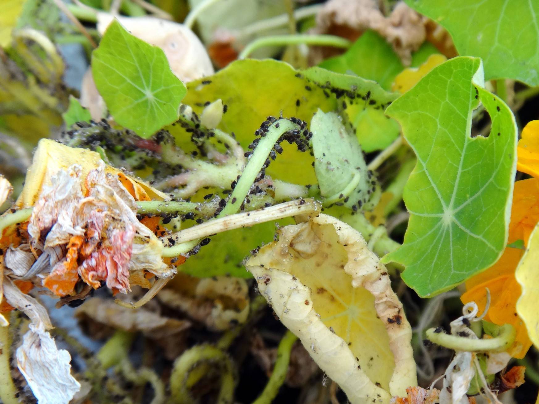 Nasturtium has a fairly strong immunity. Trouble with her almost never arises. But like all living things, it can also become the object of attention of unwanted guests, although it is planted to scare off some pests on the backyard.