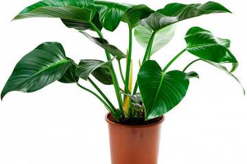Vine leaves are located along the entire length of the flexible stem. They are thick and leathery, dark green in color and oblong-oval in shape. With long aerial roots, the plant clings to the support.