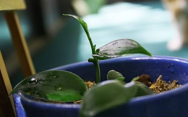 - Next, you need a cut off part of the shoot, on which there are at least three nodes with aerial roots. The stalk can be treated with a growth stimulant.