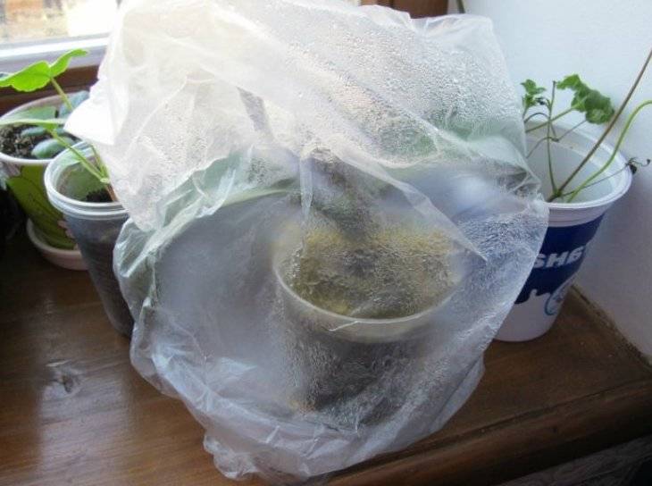 - The pot itself is placed in a plastic bag and placed in a shady place.
