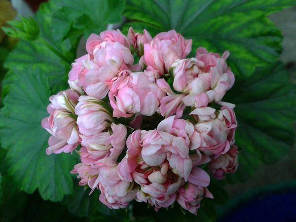 - the most important detail in the description of Anita pelargonium is the beautiful inflorescences, each flower in which resembles a miniature rose. Their color is pale pink. There are a large number of petals in the bud, due to which the flower looks more magnificent;