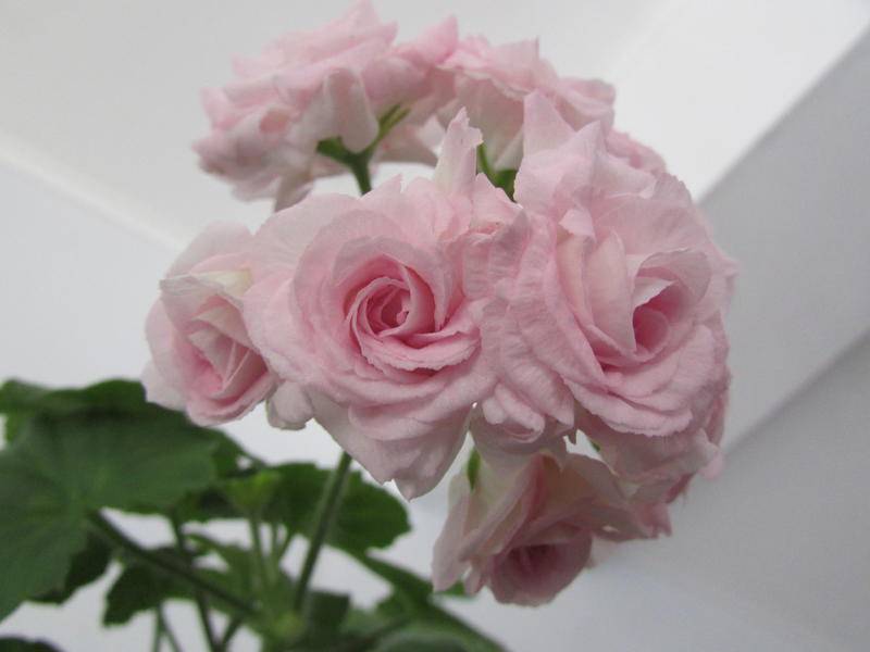 Pelargonium Lady Gertrude is a hybrid variety that was obtained by crossing hybrid and ivy geraniums. From the side, the flower resembles a rose.