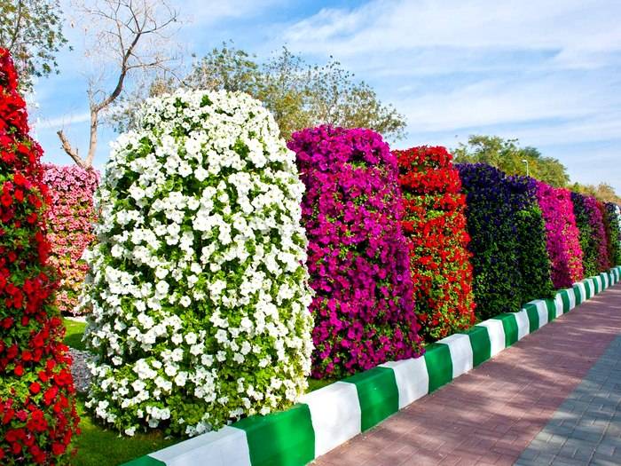 Petunias are used to create monoclumbums of various shapes, as borders, in vertical gardening. They are perfect in hanging planters and drawers on the balcony or window. Petunias are often used in oriental rock gardens to decorate large boulders. These flowers are interestingly combined with conifers and cereals.