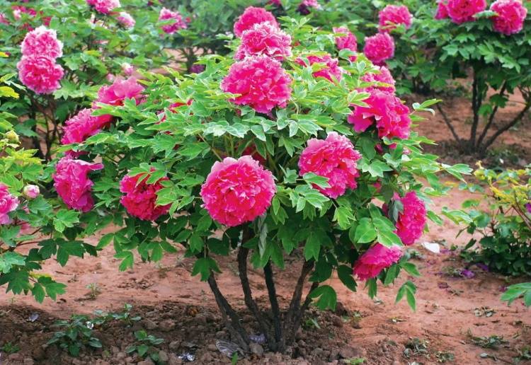 Diamonds peonies bloom in mid-spring and can last until early June. Buds are formed on the central and lateral shoots, they bloom alternately. Inflorescences that have dropped petals must be periodically trimmed so as not to spoil the appearance of the peony. The bushes are watered periodically.