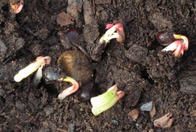In August, seeds are planted in flower pots filled with fertile soil with neutral acidity. The depth of planting in the ground is 5 cm. It is better to use a ready-made substrate purchased at a flower shop for this purpose. The pots are buried in a flower garden in the open field and left in this form for the winter. Before the onset of cold weather, cover with agrofibre and fallen leaves.