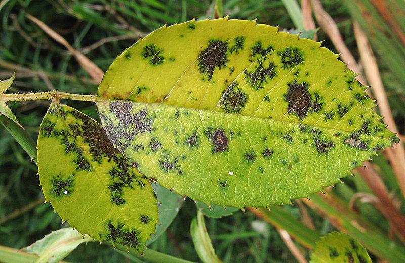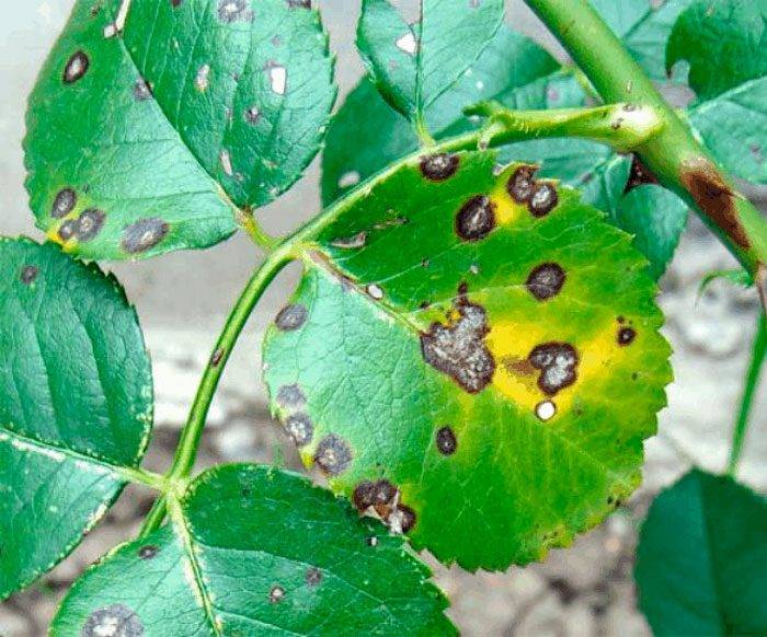 - black spot. When this infection appears, yellowing of the leaves and the formation of dark spots on them are observed. A diseased plant does not tolerate winter well and grows with difficulty. Any systemic fungicide will help to cope with the pathology.