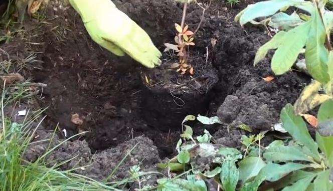 You need to dig a hole about 30 cm deep and 45 cm wide. At the bottom, you need to lay drainage from any suitable material - pebbles, broken shards, gravel of the middle fraction. Then install the plant in the prepared hole along with an earthen lump.
